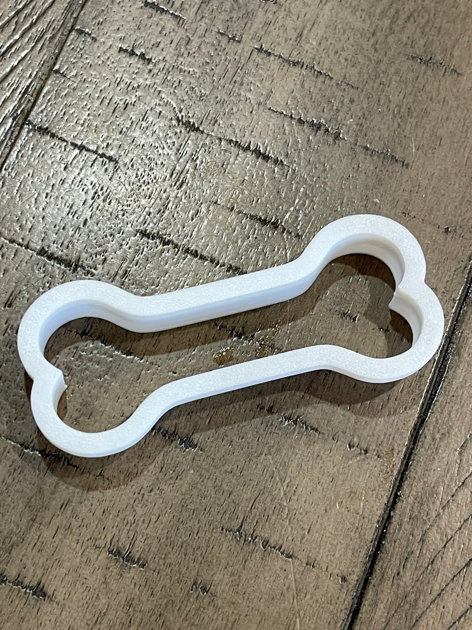 Custom 3D-printed dog bone cookie cutter made from durable PLA plastic.